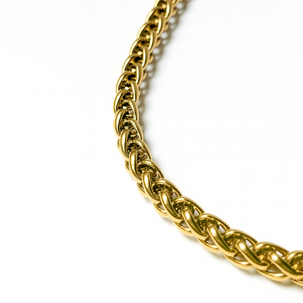 Collar dorado de eslabones gruesos entrelazados. Un diseño elegante y con carácter que aporta fuerza a cualquier look.