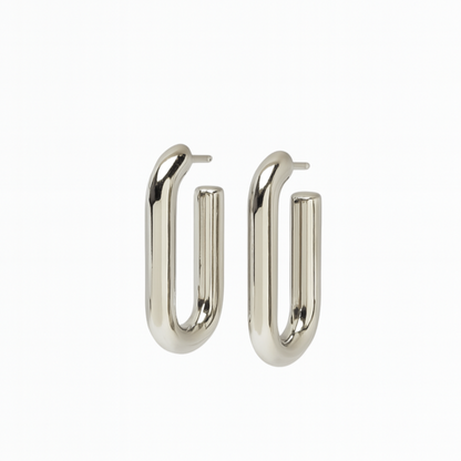 Pendientes de diseño tubular con forma de “U” invertida y acabado ultra brillante. Modernos, minimalistas y con mucha presencia, son el complemento ideal para un look urbano con toque sofisticado.