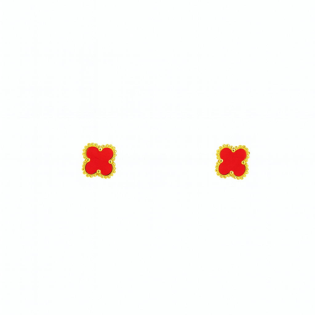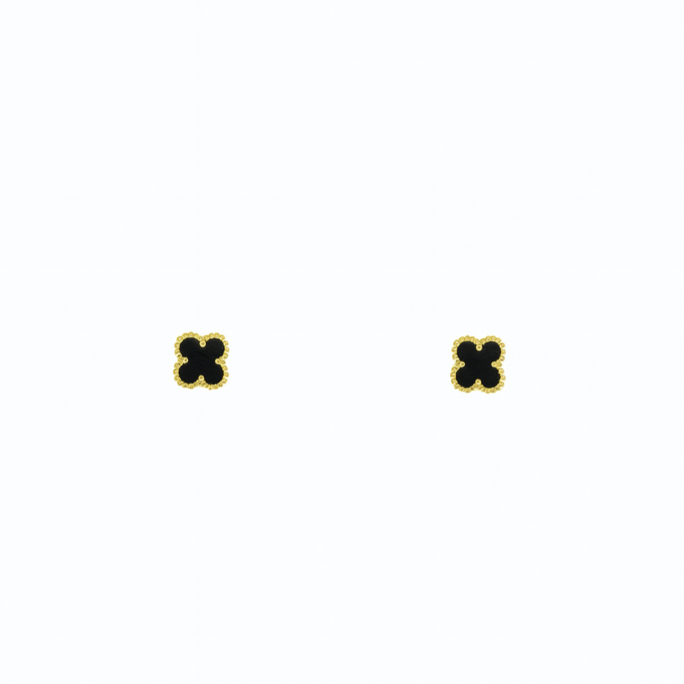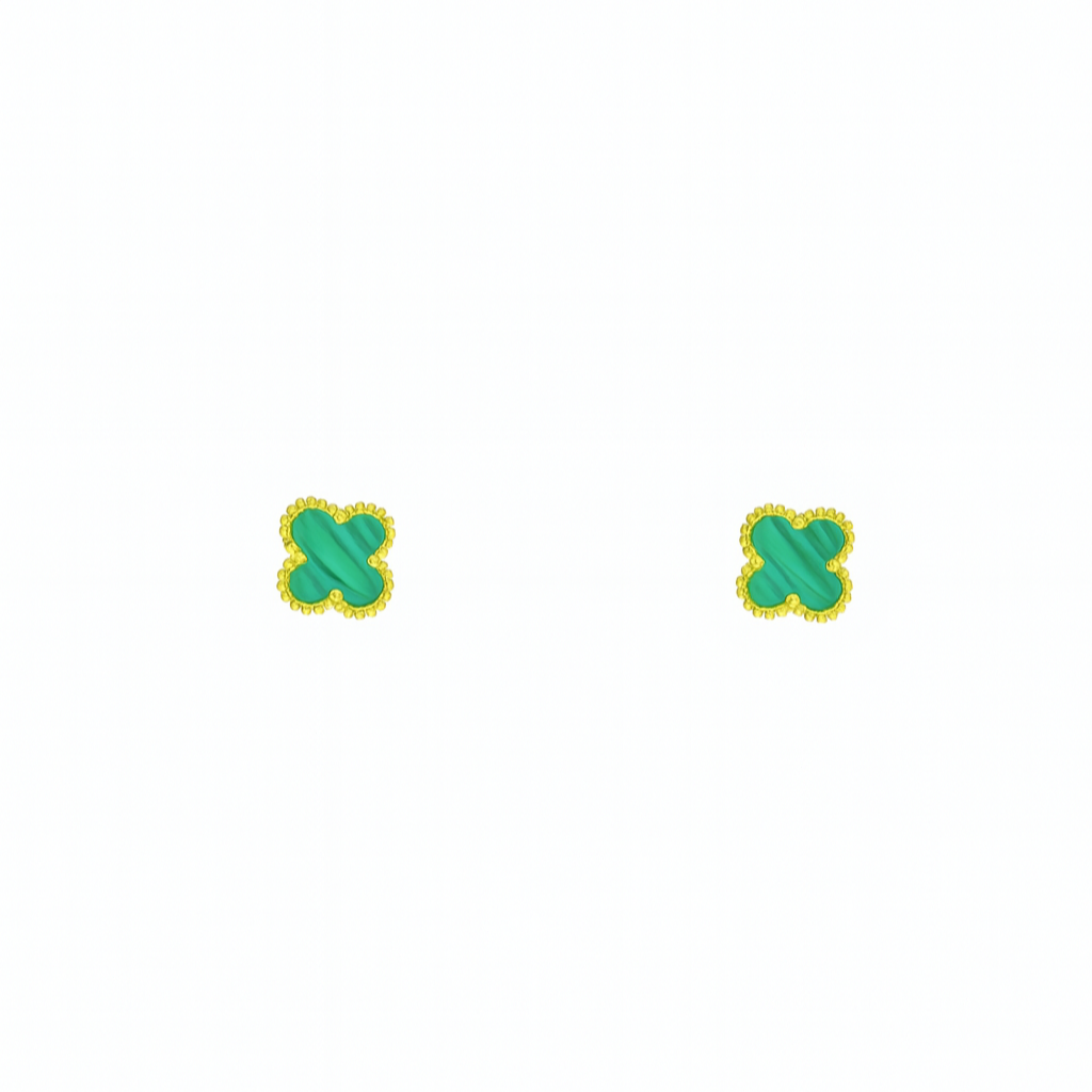 Pendientes en forma de trébol de cuatro hojas, con borde dorado texturizado.