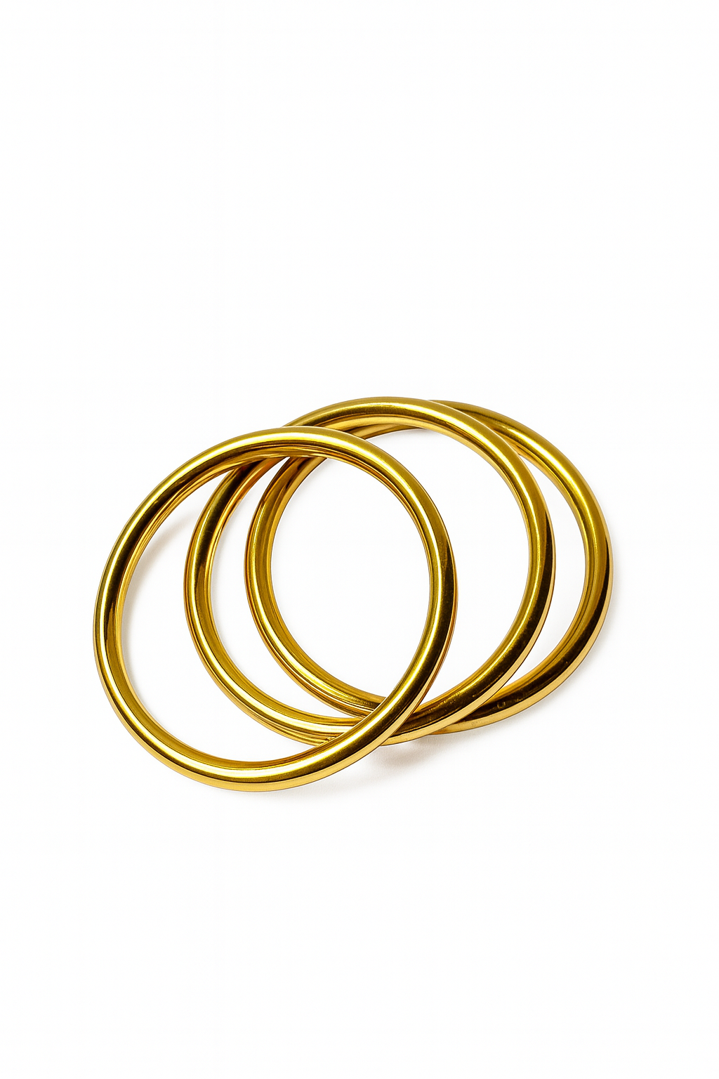 Set de tres pulseras rígidas doradas. Diseño versátil y minimalista que aporta movimiento y frescura a tu estilo.